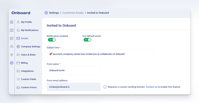 If you have questions, want to customize your sender details, or need help with DNS setup, contact us anytime at support@onboard.io.