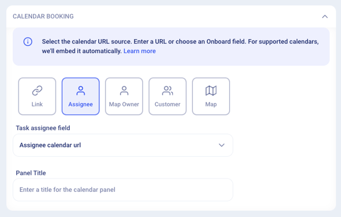 Calendar booking allows you to embed your calendar booking app or offer a url to book within Onboard tasks.